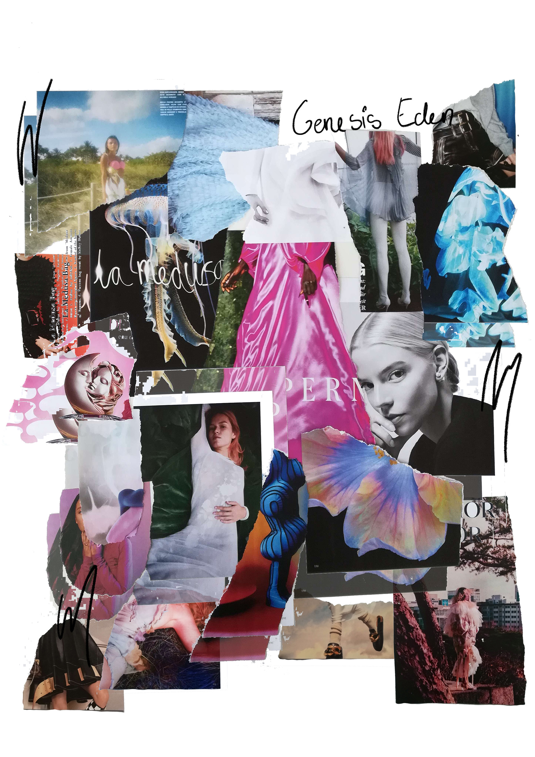 Ein Neuanfang in einem Paradies, Genesis Eden, soll das Ziel und das Gefühl, welches durch die Kollektion vermittelt werden, sein. Das umgesetzte Outfit steht repräsentativ für die Realisation der Kollektion.