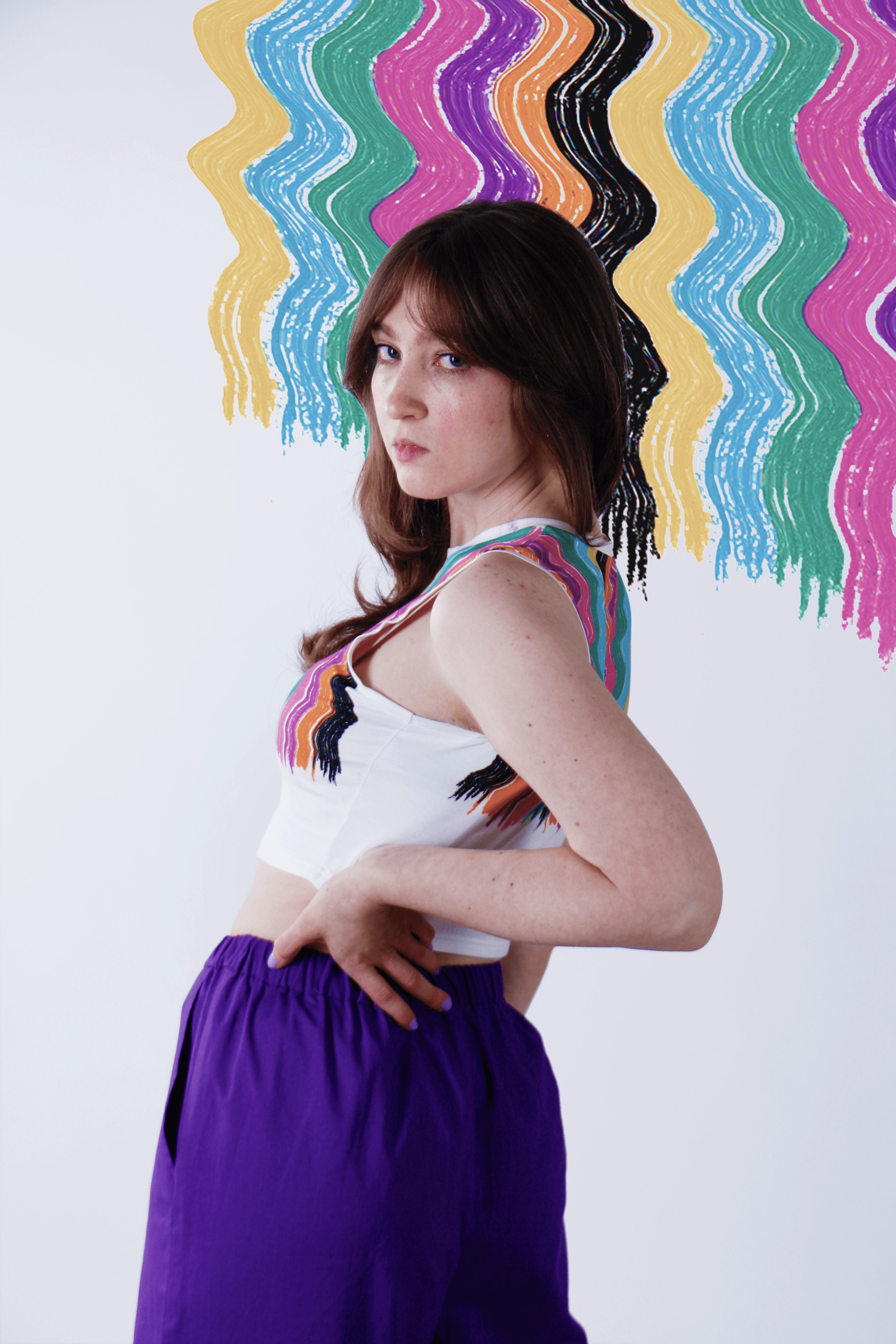 Die enstandenen Prints und die capsule collection mit dem Titel „ popculture expressions“ drückt die wandelnden Emotionen in einer Welt aus schnellem Medienkonsum aus und die Abhängigkeiten eigener Werte mit der des aktuellen Zeitgeistes, geprägt von popkultureller Referenzen.